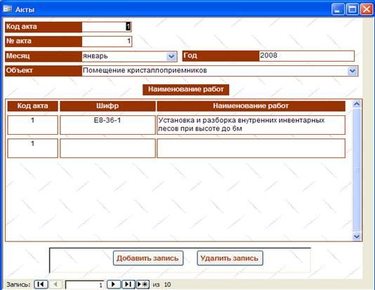 Рисунок 3.10 - Результат запроса «Акты по объектам»