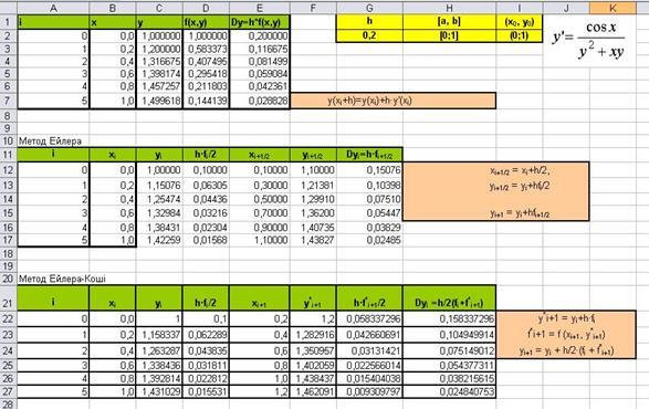 Розв’язати попереднє диференційне рівняння y' =f(x, y) вдосконаленим методом ломаних та вдосконаленим методом Ейлера-Коші.