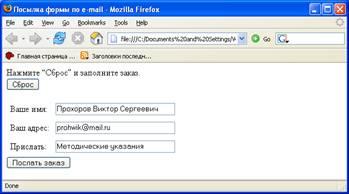 Рассмотрим пример посылки сообщения из формы по электронной почте.