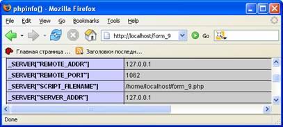2.8. Применение функции phpinfo() для отладки