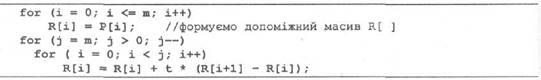 Результат роботи алгоритму — координати однієї точки кривої Без'є — записуються в R[0].