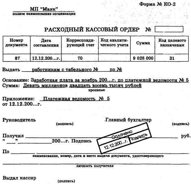 Разовые документы отражают одну хозяйственную операцию (приходный кассовый ордер и др.).
