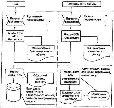 Рис. 3. Структурна схема обробки економічної інформації персональної міні- і макро-ЕОМ в умовах АРМ аудитора, ревізора.