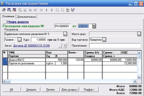 При дійсному продажі товару (продукції) по попередньо виписаному «Счета» варто виписувати документ «Расходная накладная» на підставі даного «Счета» (у режимі введення документа на підставі).