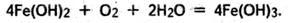 Гідроксид феруму(ІІ), що утворився, легко окиснюється киснем повітря: