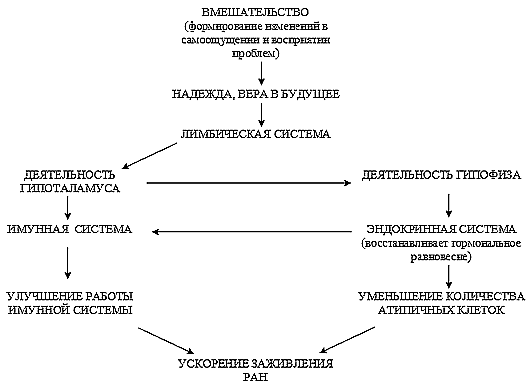 Следуя приведенной логике развития заболевания влияющего на скорость заживления травм, была выстроена модель психологического вмешательства с целью ускорения процесса выздоровления: