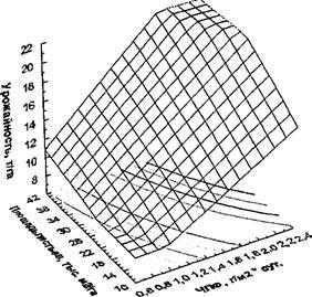– обеспеченность МДж энергии переваримым протеином, г, х – количество бобового компонента, тыс. шт./га.