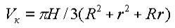 д) Объём круглого в плане котлована с откосами (рис. 1, в) определяют по формуле опрокинутого усечённого конуса: