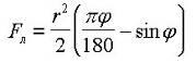 Площадь сечения ложа (выкружки) можно определить по геометрической формуле площади сегмента, каковым фактически и является грунтовое ложе. Исходя из этого,
