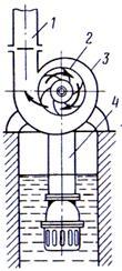 1 - напорный патрубок; 2 - рабочее колесо; 3 - корпус; 4 - всасывающий патрубок.