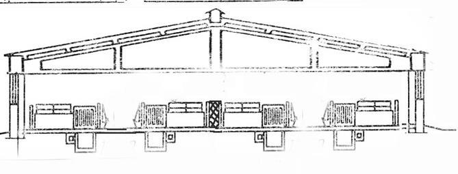 Свинарник представляет собой прямоугольное блочное здание со станковым содержанием животных. Содержание животных в станках четырехрядное. Станки оборудованы кормушками и автопоилками.