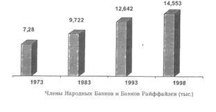 представляет собой важный фактор в кредитном секторе Германии. В центре данной банковской группы находятся 2248 действующих на местах, независимых в правовом и экономическом плане и тем самым действующих под свою ответственность Народных Банков и Банков Райффайзен с их 18 700 банками – самой густой банковской сетью в Европе. Эта децентрализованная структура очень тесно связана с отечественным рынком и позволяет вести гибкую деловую политику при оперативном принятии решений. Более 17 400 служащих работают в настоящее время в Народных Банках и Банках Райффайзен. В конце 1998 года выданный Народными Банками и Банками Райффайзен объем кредитов достиг размера 616 млрд. немецких марок, общий объем вкладов составил 801 млрд. немецких марок, из них сберегательных вкладов – 435 млрд. немецких марок. Тем самым сумма балансов Народных Банков и Банков Райффайзен составила в конце 1998 года около 1022 млрд. немецких марок.