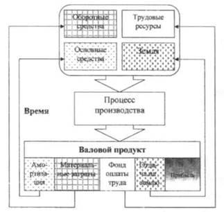В процессе производства сельскохозяйственной продукции участвуют следующие экономические ресурсы, а именно: основные средства, оборотные средства, трудовые ресурсы, земля. Все перечисленные экономические ресурсы участвуют в процессе производства, в результате которого создается продукция. В процессе реализации продукции предприятие получает выручку, из которой должны возмещаться авансированные в производство экономические ресурсы.