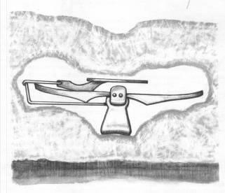 чтобы поместился капкан. Под дужки капкана, чтобы не примерзали, кладут лапник. Затем покрывают капкан белой тонкой бумагой и разрезают под тарелочкой, засыпают снегом таким образом, чтобы над тарелочкой капкана был будто бы след зверя.