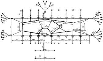 Рис. 5. Невод ставной полуподвесной с внутренними подъемными дорогами 80х18х15