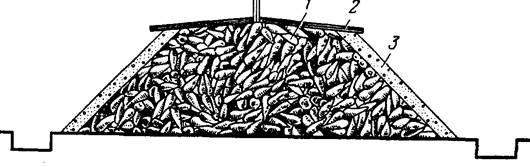Способи зберігання. В холодильниках овочі і плоди зберігають в тарі - ящиках, ящиках-лотках, контейнерах. їх штабелюють навантажувачами. Ящики попередньо складають на піддони. Нижній ряд ящиків знаходиться на висоті 15 см від підлоги (висота піддона). Між стінами і штабелем залишають 40...50 см, між стелею і поверхнею тари 30...50 см. Від батарей штабелі з продукцією розміщують на відстані не ближче 50...60 см, а між ними підвішують захисний екран з поліетиленової плівки для попередження переохолодження або підморожування овочів і плодів. Для огляду продукції роблять проходи шириною 50...60 см.