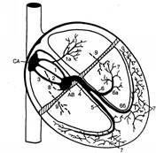 ** Скорость проведения в AN-зоне атриовентрикулярного соединения около 0,05 м/с в пучке Гиса — меньше, чем в волокнах Пуркинье, в сократительных миоцитах предсердий — меньше, чем в желудочках.
