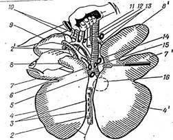 —легочнаяартерия,-3—дорсальные средостенныелимфатическиеузлы, 4.41