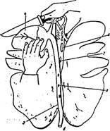 —подмышечныйпервогоребра (подребром), 7 —ножкидиафрагмы, 71