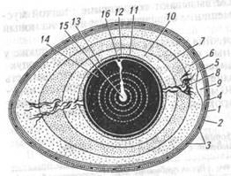 внутренний слой жидкого белка; 11— внутренний слой плотного белка; 12 —