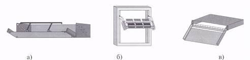 • применяются реализации 19-дюймового конструктива, которые позволяют тем или иным способом с помощью различных петель или шарниров откинуть монтируемую панель вбок или вперед под углом, близким к 180°. Это обеспечивает удобный доступ к IDC-контактам на ее задней поверхности (рис. 1а);