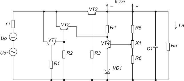 Рассмотрим наиболее распространенную схему с последовательным включением регулирующего элемента.