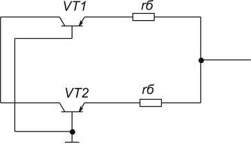 В РЭ для увеличения коэффициента передачи и согласования мощного РЭ с маломощным УПТ прим схема составного транзистора.