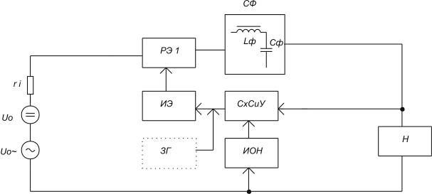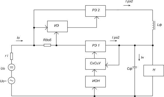 РЭ, СхСиУ, ИОН схемно не отличаются от узлов, используемых в непрерывном стабилизаторе. В качестве ИЭ применяются релаксационные генераторы, мультивибраторы, триггеры и др.