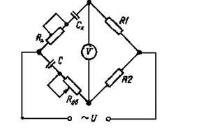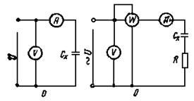 Без врахування активних втрат в конденсаторіємність розраховується за показниками амперметра й вольтметра: Сх