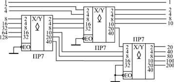 Рис. 1. Преобразователь двоично-десятичного кода от 0 до 99 в двоичный код