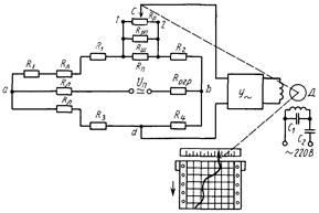 Широко распространены автоматические мосты для измерения и записи температуры, работающие в комплекте с терморезистором (рис. 1)