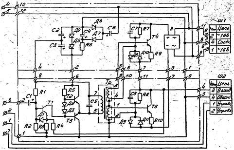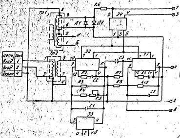Трансформатор Тр выполнен на магнитопроводе ШЛМ 20x25 и снабжен штепсельным разъемом для подключения питания и контактами для межблочных соединений.