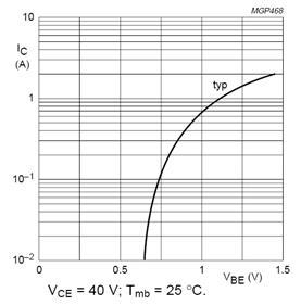 При напряжении питания 50В передаточная характеристика по току будет слабо отличаться от представленной на рис 3.3. Исходя из этой характеристики, выходной ток одного транзистора будет приблизительно равен 0,25 А