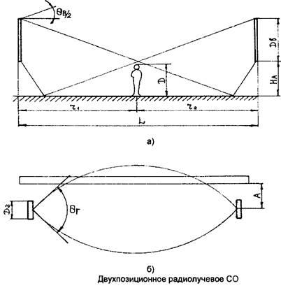 Двухпозиционные РЛСО работают в дециметровом, сантиметровом и миллиметровом диапазонах и используются для блокирования периметров объектов, мест временного расположения войсковых подразделений, грузов и т.п. Полезный сигнал формируется за счет изменения объектом обнаружения сигнала связи на входе приемника.