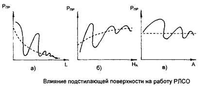 Влияние подстилающей поверхности на работу РЛСО показано на рис. 3.2. При увеличении расстояния L между антеннами принимаемый сигнал имеет колебательный характер и затухает. При увеличении высоты подвеса антенн НА
