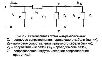 Зону обнаружения, показанную на рис. 3.6 можно представить в виде четырехполюсника, эквивалентная электрическая схема которого приведена на рис. 3.7.