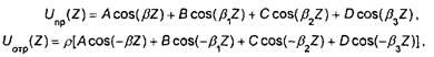 где А, В, С, D - амплитуды пространственных волн; - коэффициенты распространения волн; р - коэффициент отражения.