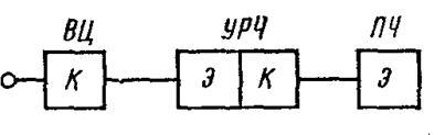 Если перейти на следующий уровень иерархии, то, например, структурную схему линейного тракта можно изобразить в виде совокупности типовых функциональных узлов — усилителей, преобразователей частоты, устройства АРУ и т. п. (рис. 1.3, б).