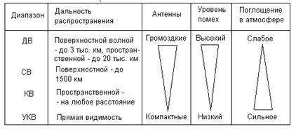 Результаты сравнительного анализа характеристик радиоволн различных диапазонов приведены в табл. 2.