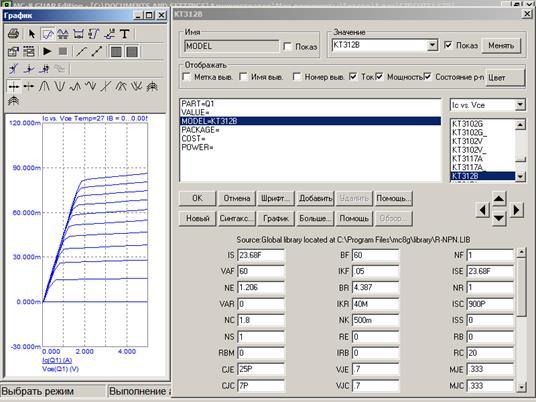На рисунке 6 представлено окно параметров транзистора КТ312В с графиком семейства выходных характеристик.