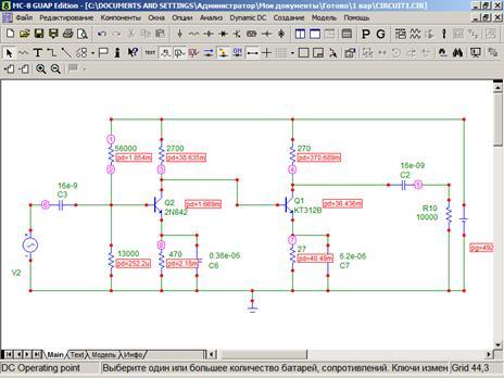 Рис. 4. Схема модели в MicroCap 8