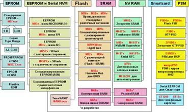 Сформируем перечень различных микросхем памяти, обладающей уникальной программируемой технологией производства систем памяти на одном кристалле.