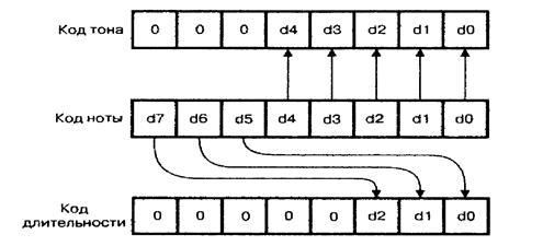 44 dnota=((dnota)>>5)$0x07 //Определение код длительности