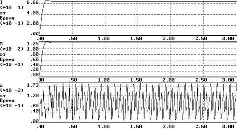 Дополнительный резистор Rd включен в цепь ротора через неуправляемый выпрямитель U1. Коммутатор (ключ) К периодически закорачивает сопротивление Rd, причем скважность g= tвкл/Тком может изменяться внешним сигналом Uzc в пределах от 0 до 1. При g=0 т.е. при не включенном коммутаторе, сопротивление роторной цепи составит Rr+Rd, что определит механическую характеристику 2 (рис.2). При g=1 (ключ включен постоянно) Rd=0 и двигатель работает на характеристике 1, близкой к естественной (рис.2). Плавное изменение величины скважности в пределах 0< g<1 обеспечивает семейство характеристик, расположенные между характеристиками 1 и 2. Величина g в данном случае зависит от величины тока и скорости. Импульсно-ключевой способ управления АД имеет ряд преимуществ: Высокое быстродействие; Переход с характеристики на характеристику при переходных процессах плавный, без скачков тока и момента, что повышает надежность системы.