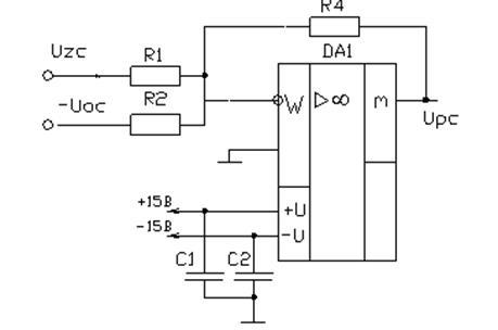 Один операционный усилитель служит для суммирования сигнала задания на ток и сигнала обратной связи, второй будем использовать как интегратор сигнала, поступающего с сумматора, предусмотрев ограничение с помощью стабилитрона 2С210А. В качестве закорачивания интегратора применим второй ключ микросхемы КР590КН2.