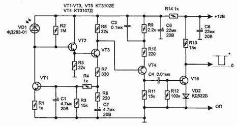 Рис.2 Принципиальная схема приемника ИК-импульсов.