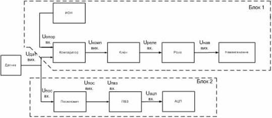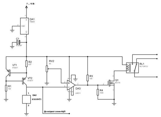 Дана схема буде складатися з двох основних функціональних блоків. Вони будуть повністю незалежними від роботи друг-друга. Єдине від чого вони будуть залежати, так це від функціонування датчика. Перший блок буде вмикати / вимикати навантаження, а інший підготовлювати сигнал до входу в АЦП.
