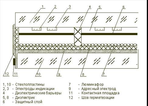 В основу ГИП переменного тока положена трехэлектродная структура газоразрядной ячейки.