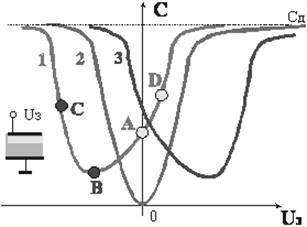 Рисунок 1.3 - Изменение емкости МДП-структур от напряжения на затворе: