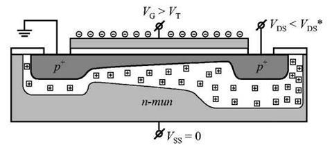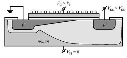 , приложенное к стоку, - это напряжение, приложенное к стоковому n+-p-переходу. При положительном знаке VDS